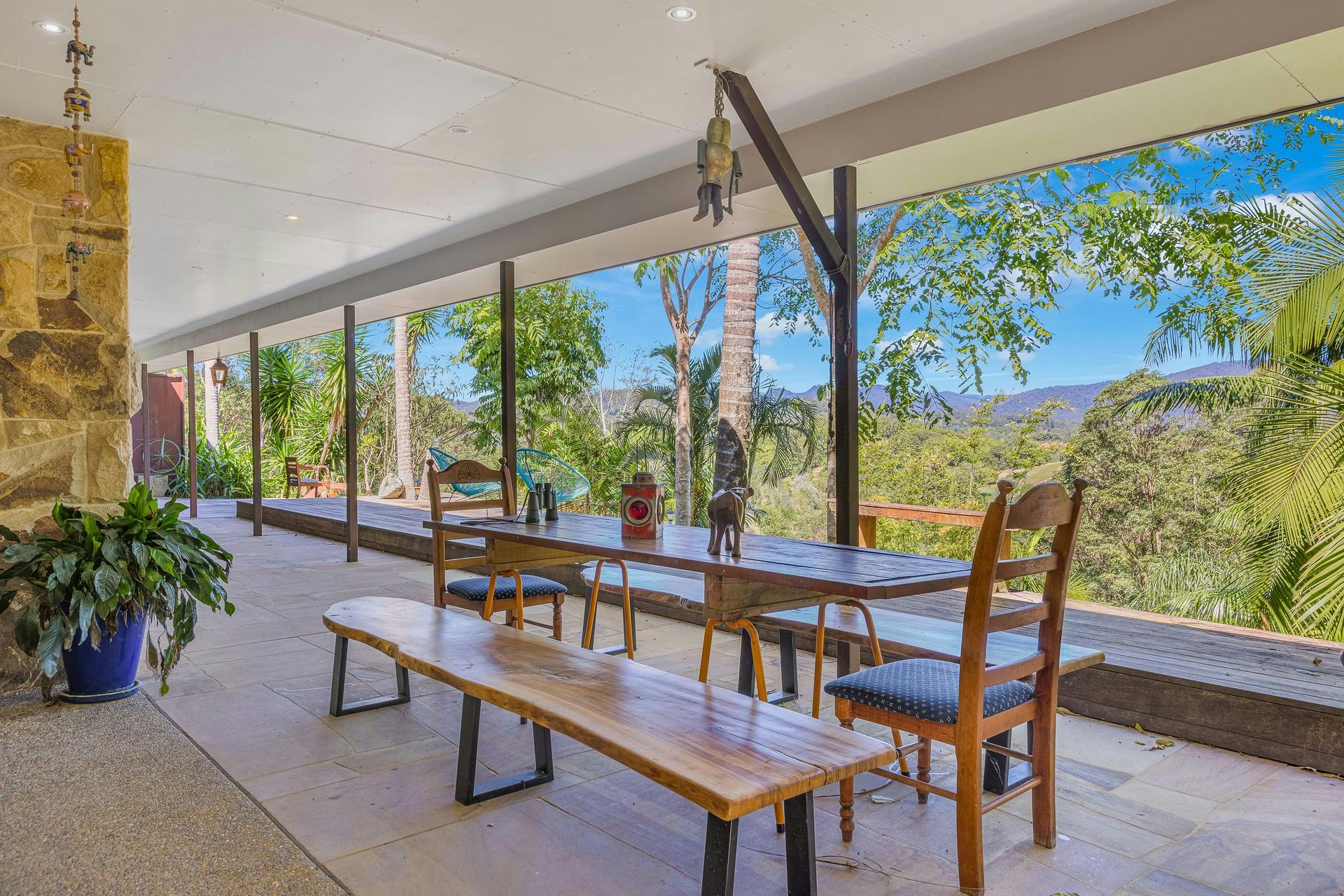 It is hard not to fall in love with this amazing, serene property located on the outskirts of Uki. The thoughtful design and aspect of the residence maximise absolutely breathtaking panoramic southern views of 'The Caldera'. Quietly located at the end of a cul-de-sac and set down from the road, the property sits on an elevated 2.5-acre block and boasts extensive use of beautiful sandstone with surrounding terraces, retaining walls, and structural build. The separate self-contained studio is currently utilised as a thriving Airbnb yet presents options for the extended family. This master-built haven is sure to impress.Features of the property include: