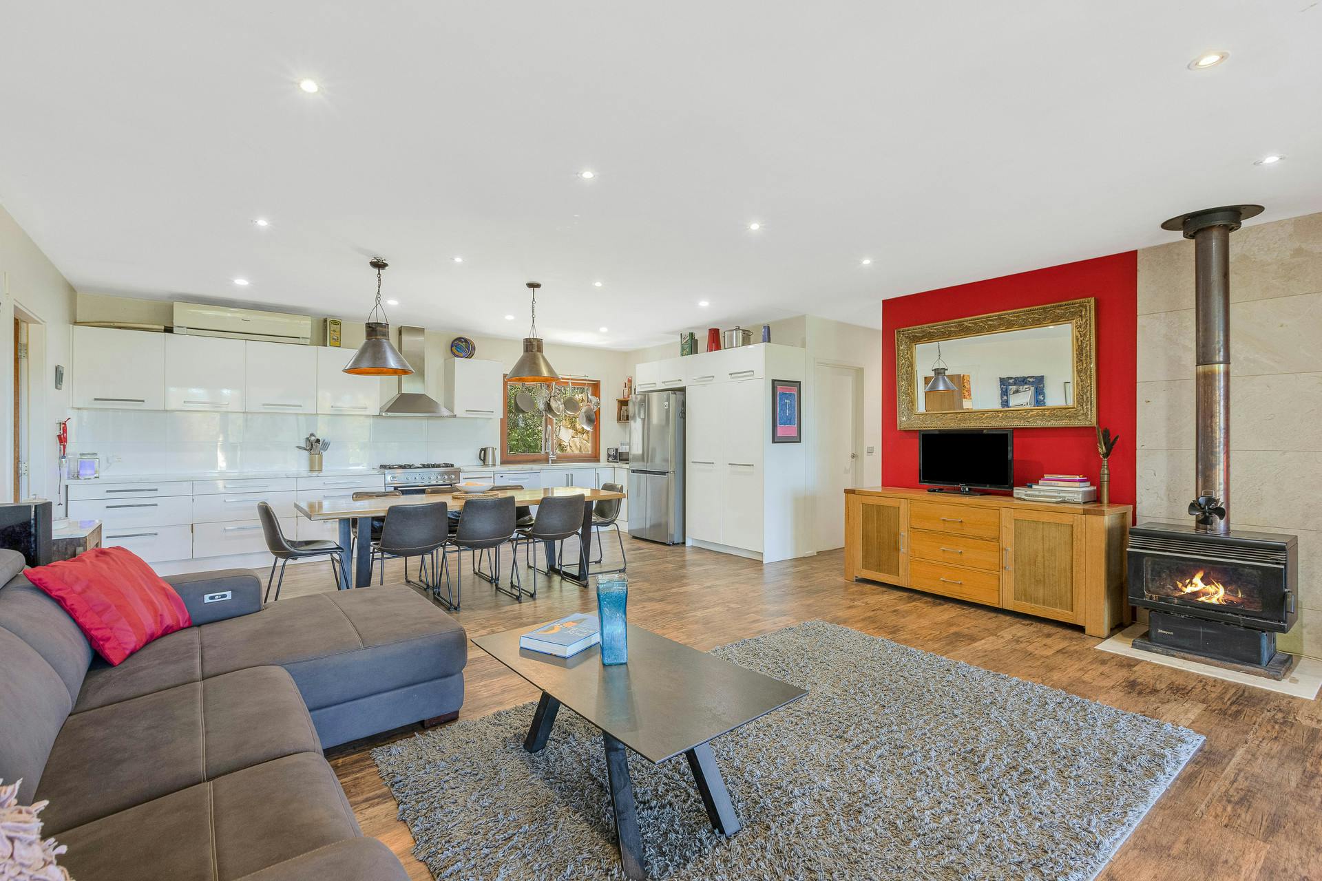 • Large central living and dining with combustion heater and stunning outlook