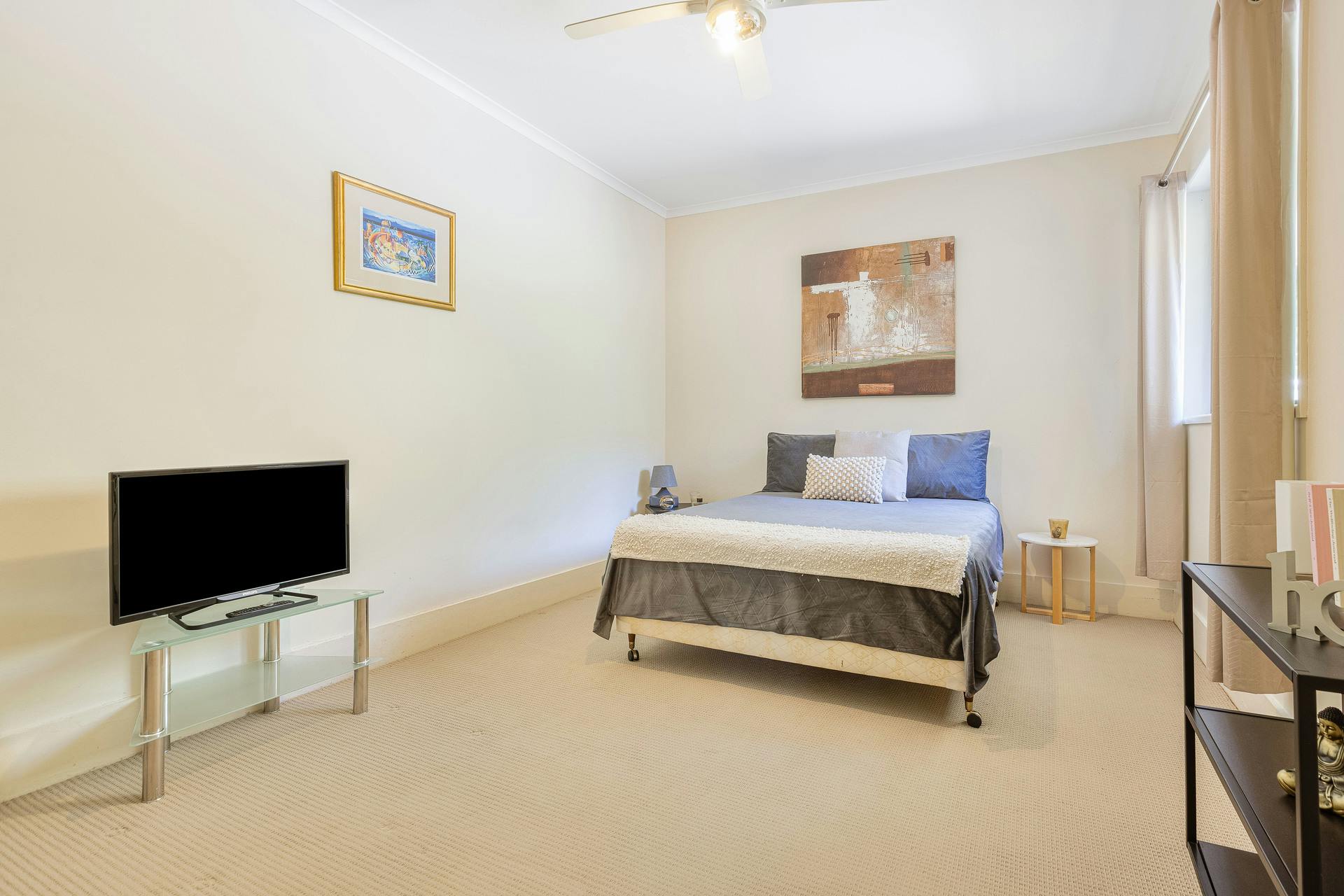 • House 1 has three spacious bedrooms, separate lounge with A/C, large original kitchen with adjoining dining and storeroom/pantry, combined laundry/bath, three-car garage with internal access, covered outdoor patio, and fans throughout