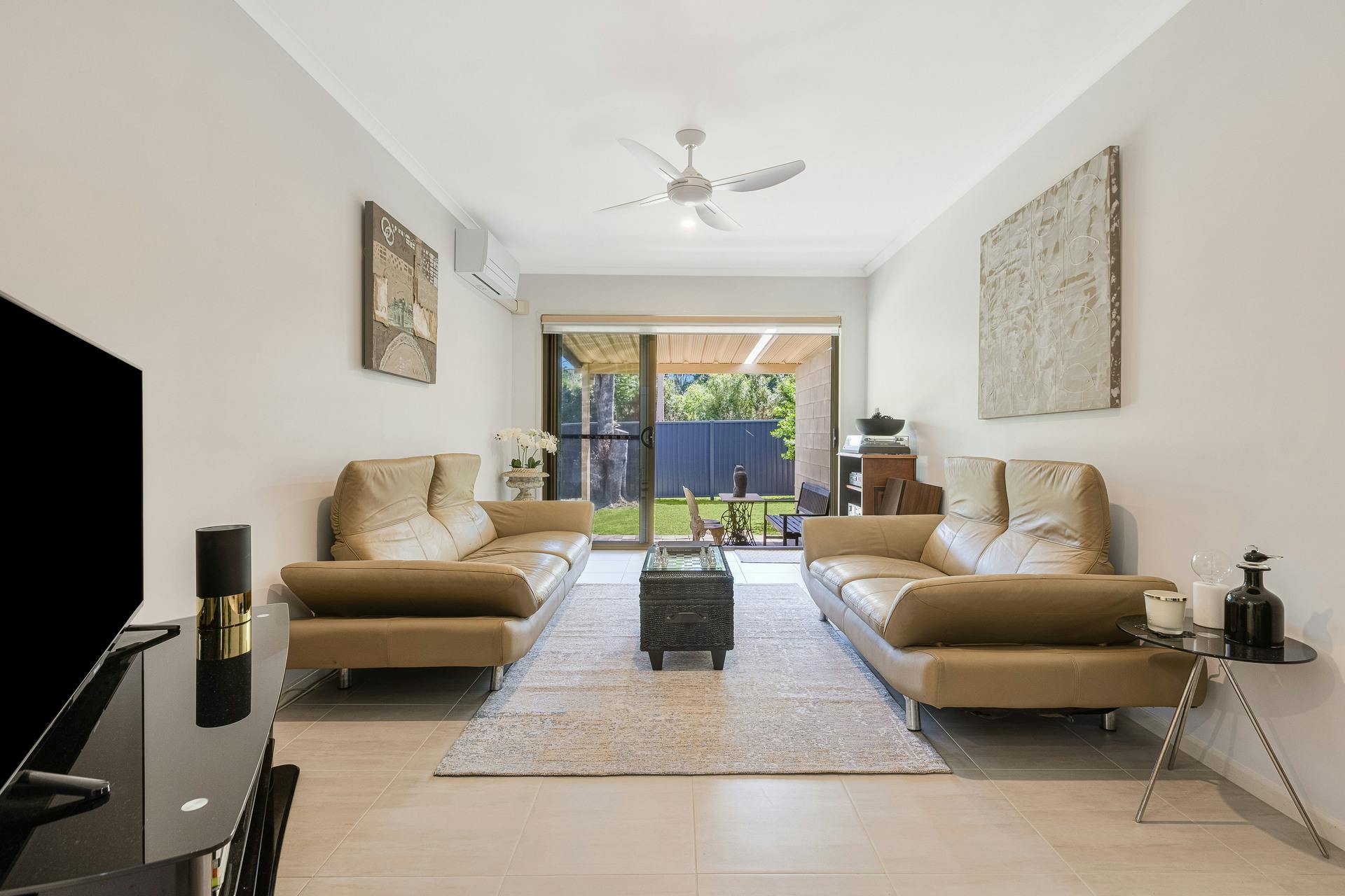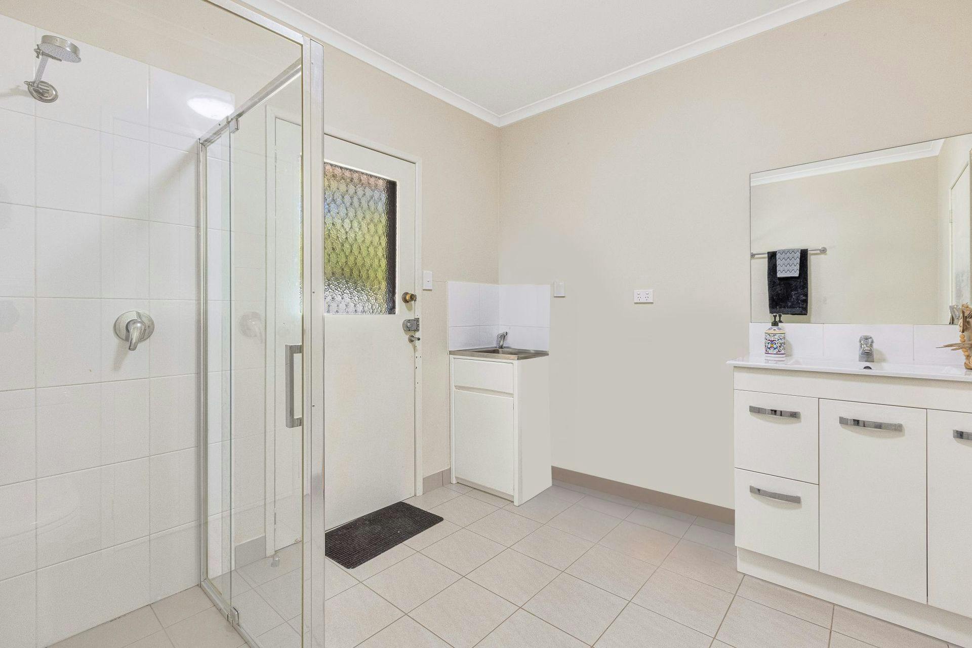 • House 2 has three large bedrooms with built-in robes and A/C units including the master with walk-in robe and ensuite, combined laundry/bath, separate living, kitchen/dining area, fans throughout, and two outdoor living areas