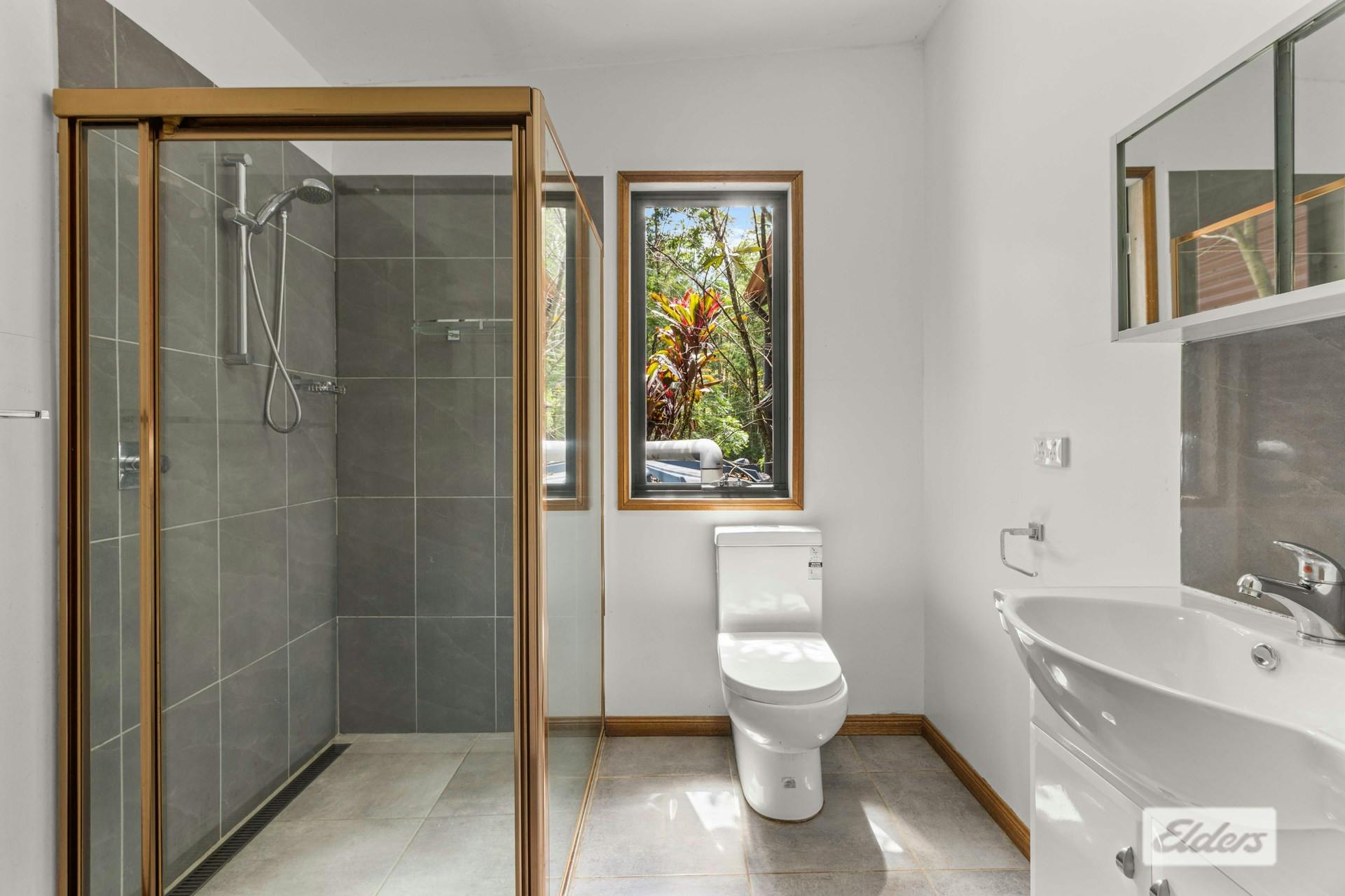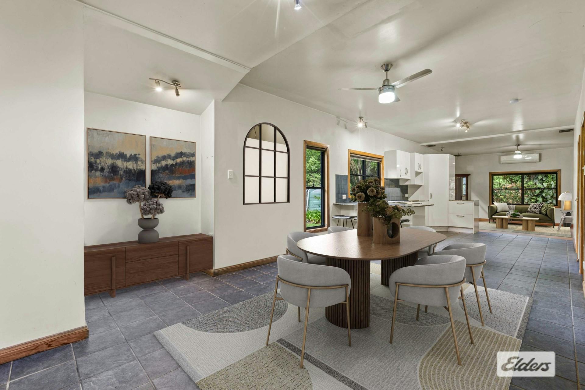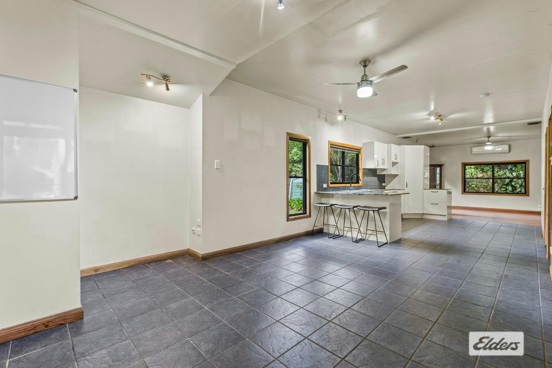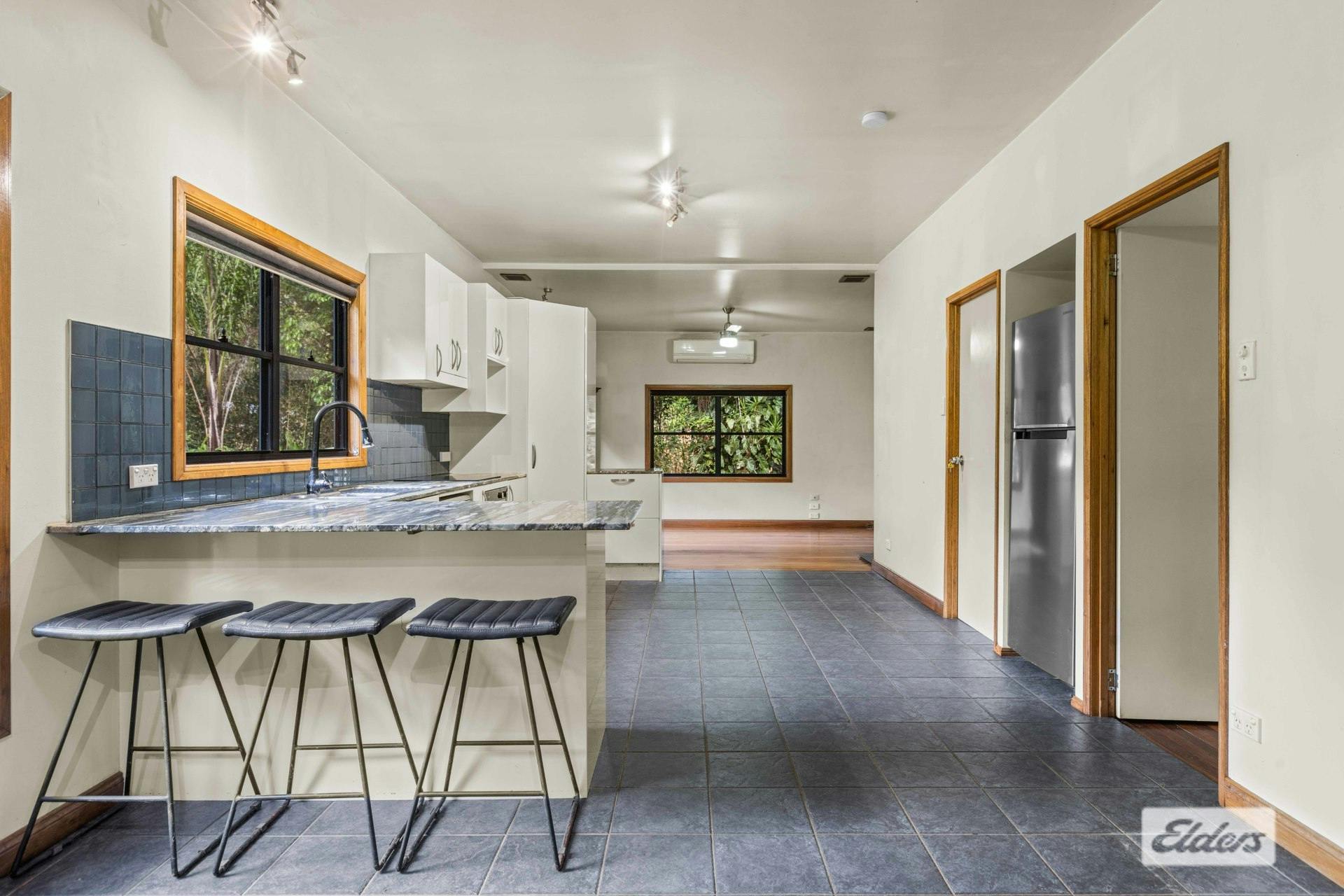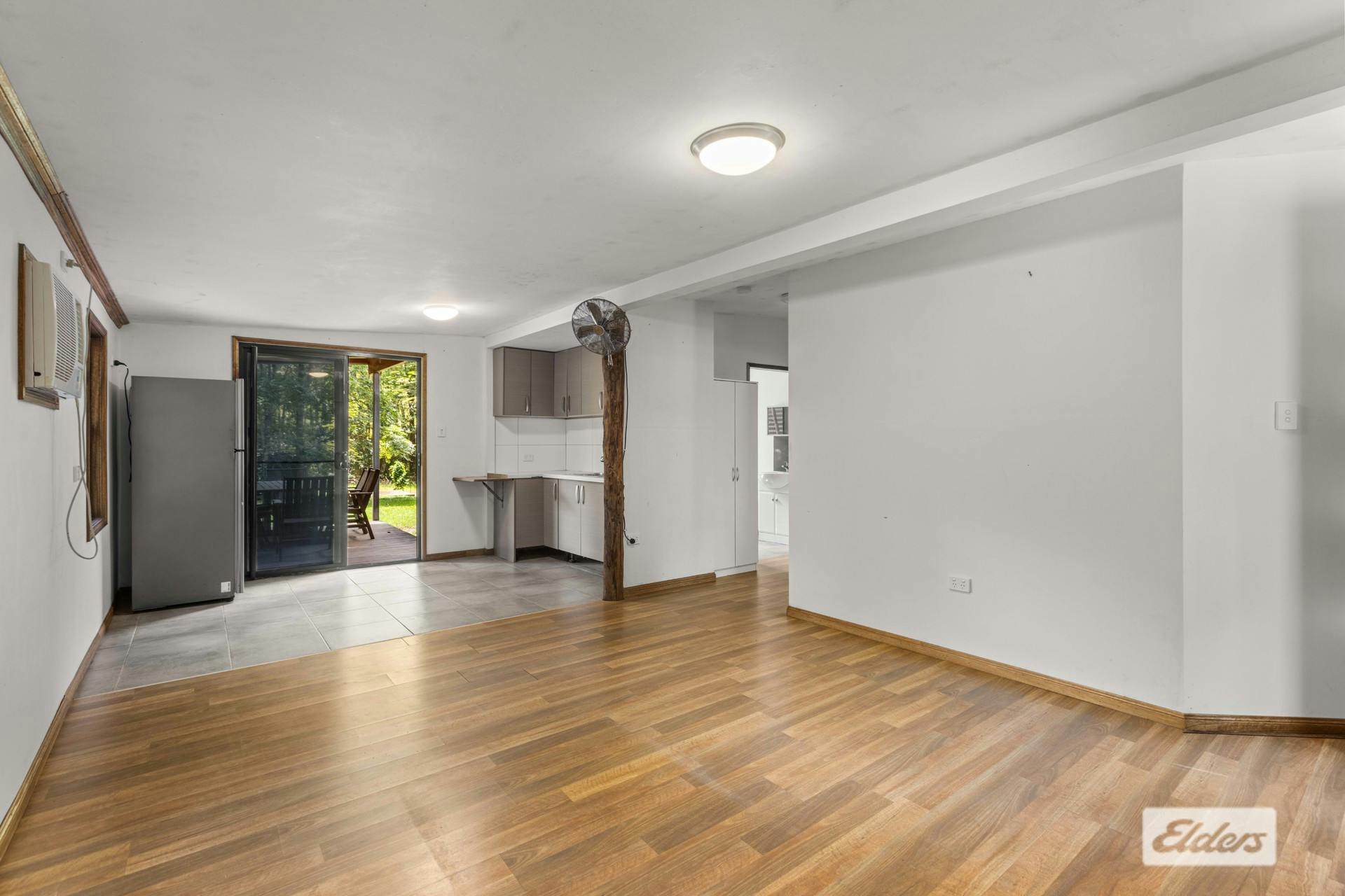 The main residence is warm and welcoming, featuring an open-plan lounge, dining and kitchen layout that flows seamlessly to an expansive entertainer's deck overlooking the tranquil surroundings. A wood-burning fireplace adds rustic charm and comfort through the cooler months, while reverse-cycle air conditioning ensures year-round comfort.